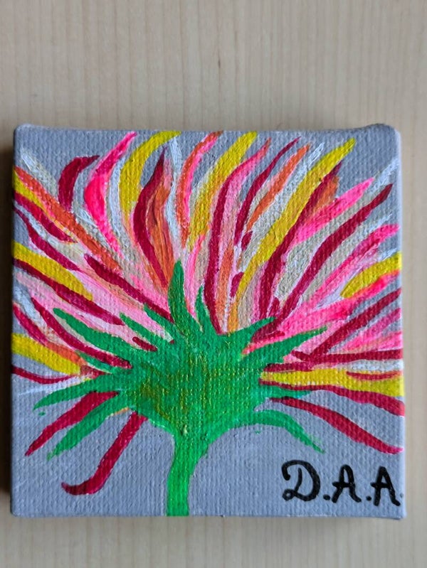 Il était une fois, au cœur d’un monde presque secret, une fleur qui naît dans un éclat de couleurs. Ses pétales, d’un rose doux, jaune éclatant, rouge vibrant, orange chaleureux et beige apaisant, semblaient danser sous une lumière douce, comme si elles étaient en train de chuchoter des secrets oubliés. Le fond gris, mystérieux et calme, entoure la fleur d’une aura de sérénité, mais aussi d’une touche d’énigme, comme si la fleur elle-même était un trésor rare et précieux.